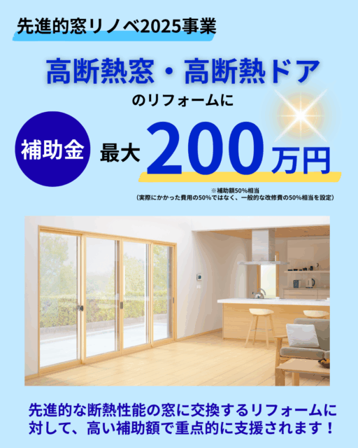 現在、「先進的窓リノベ事業補助金」などの制度を活用することで、よりお得にリフォームを行うことが可能です。
