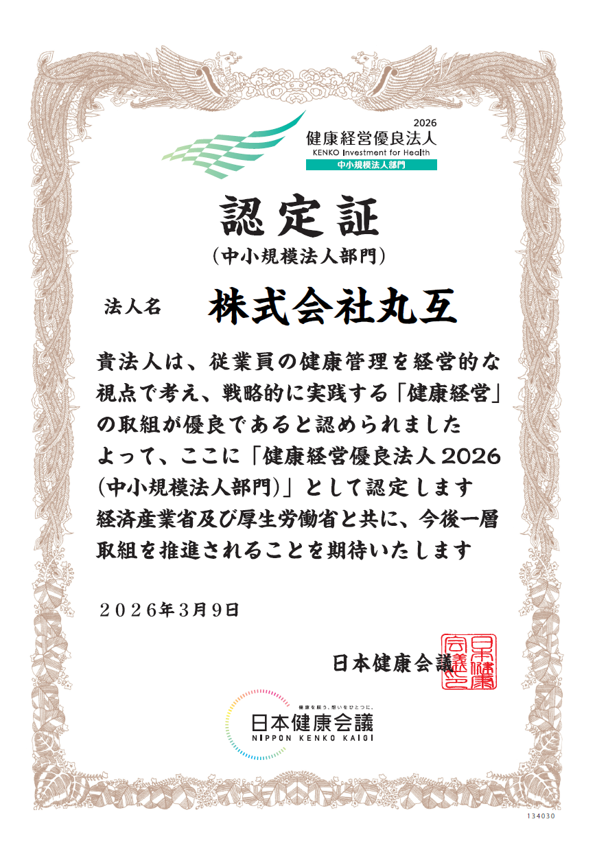 「健康優良法人2026」に認定されました。